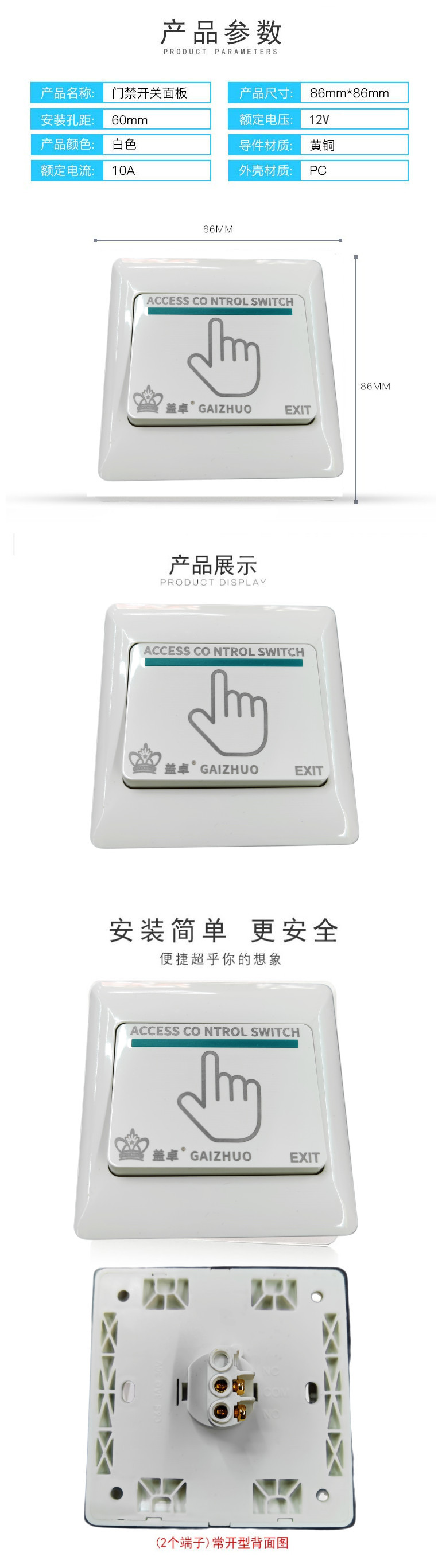 门禁开关86型按钮自动复位出门 QQ咨询 电话咨询 13527272720 详细介绍 关键词: <上一篇:门禁电插锁暗装嵌入式12V明装锁 >下一篇:门禁密码锁卡,ID,IC白卡 相关推荐 指纹考勤电子门禁系统套装 新款门禁电源控制器12V适配器 人脸识别指纹考勤掌纹门禁一体机 免布线,免开孔玻璃门指纹锁808